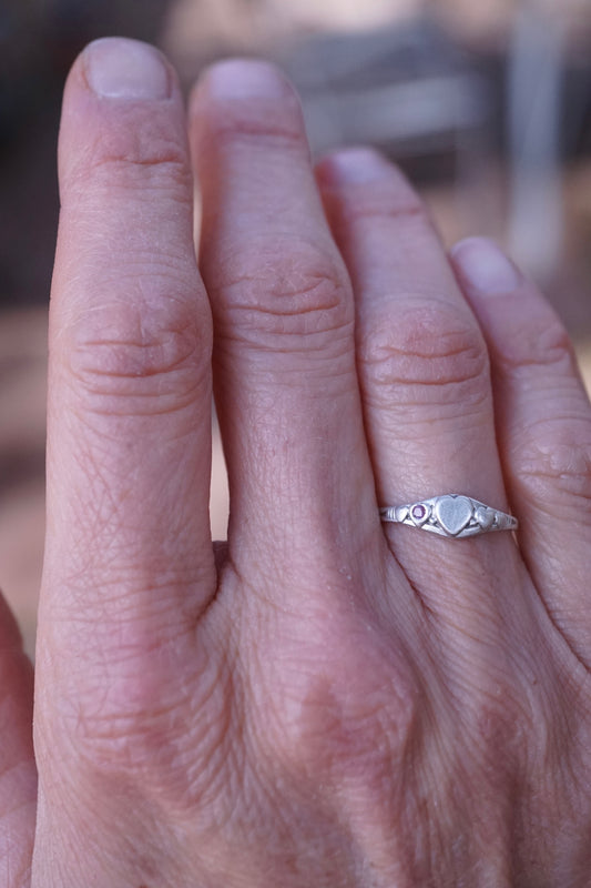 *refreshed collection* silver mini signet heart ring with ruby - size 5.75