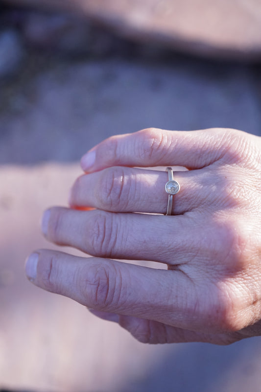 slender 14k salt and pepper diamond ring - size 5.75
