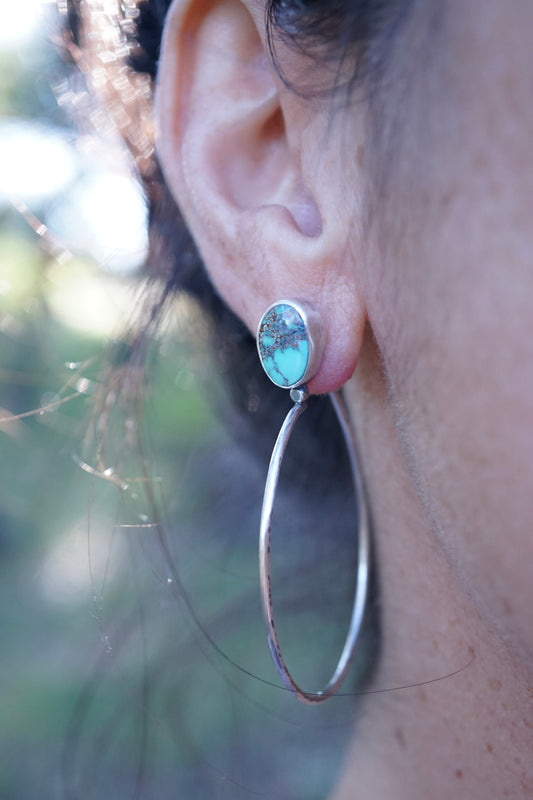 lumenrose hoops with unique royston turquoise - SMALL SIZE
