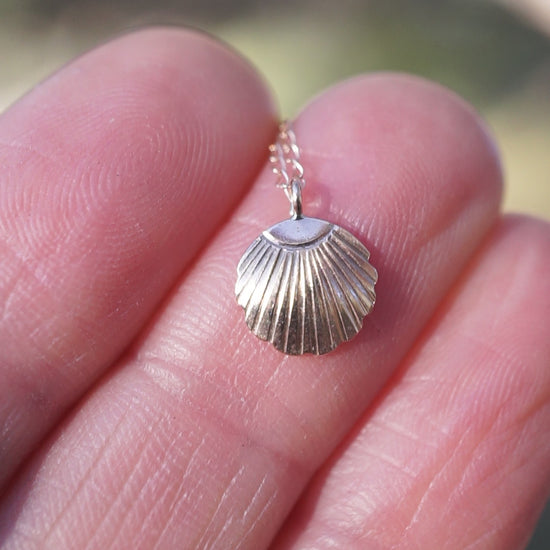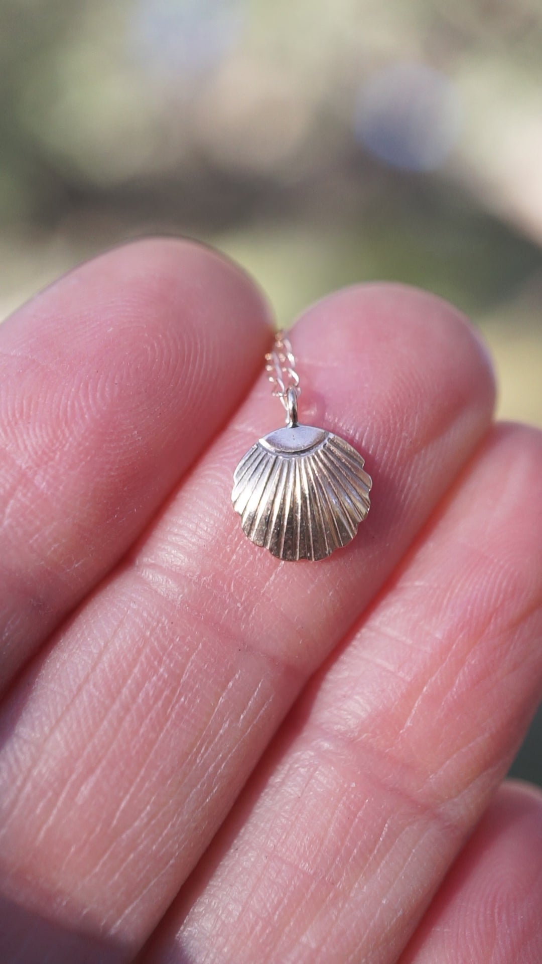 A golden seashell made from reclaimed gold. I alloyed the metal to 14k and poured an ingot. Then I hammered and rolled it with a rolling mill into sheet, from which I then sawed it out, textured and formed it to the final shape.