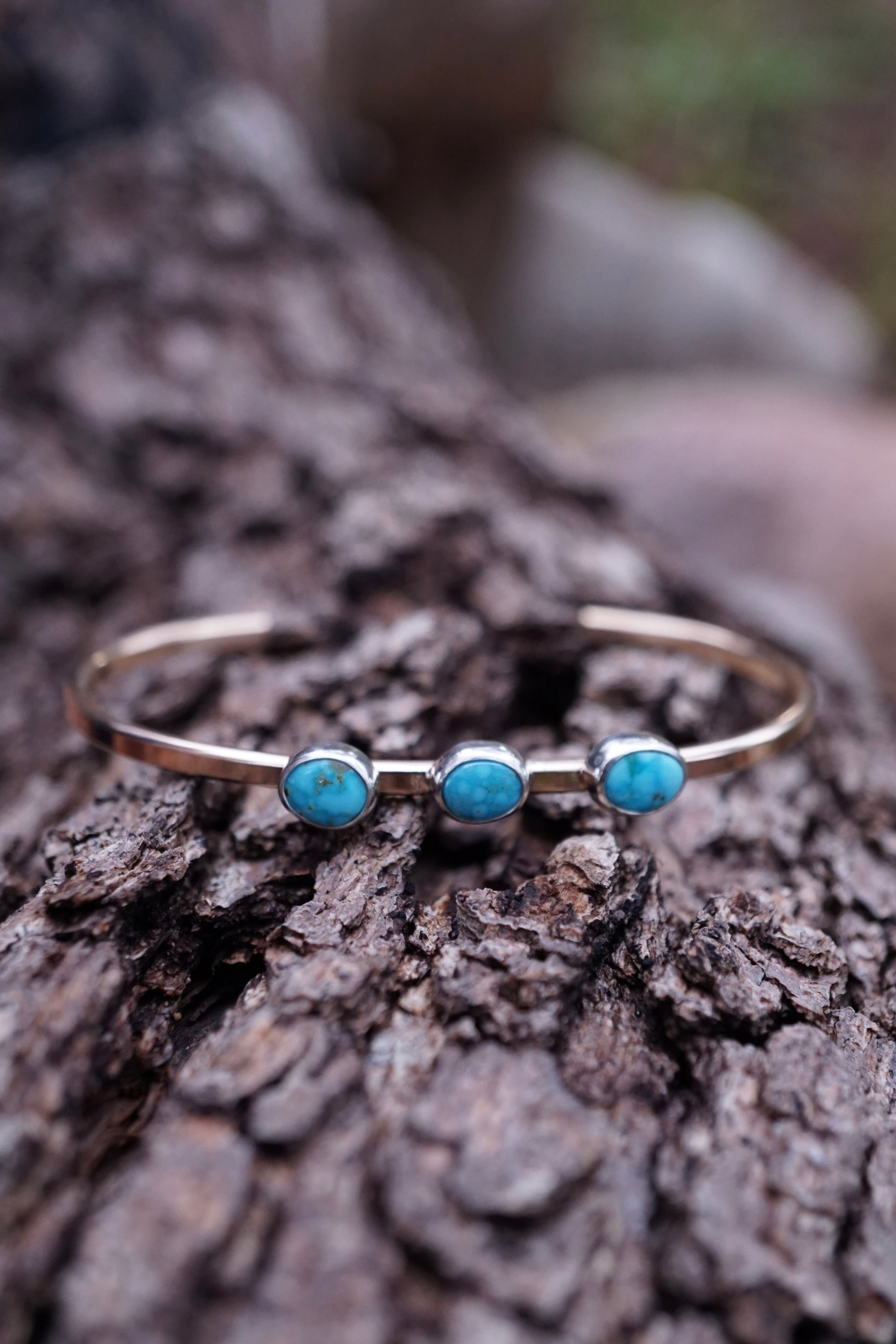 triple stone cuff in 14k goldfill + sterling with kingman turquoise
